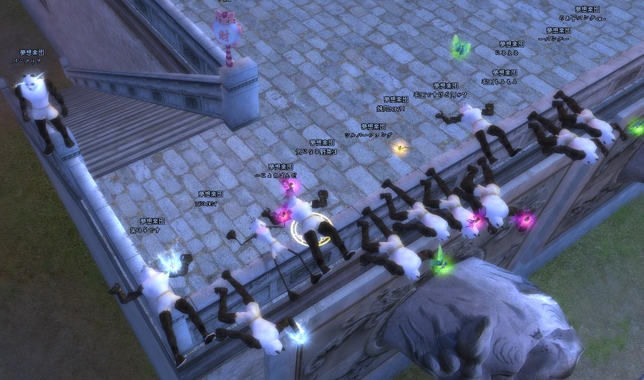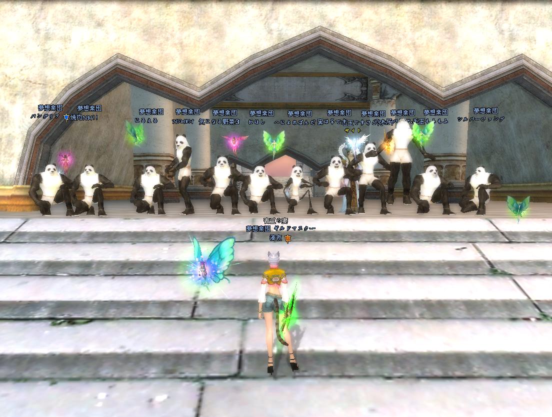 ちょっとしたネタとパンダイベント 完美世界 2009年05月25日 すっかりまた更新ががが;SSはもっさりたまっちょります!5/9のおはなし.2-1をお稲荷4匹で.一度全滅したけど倒せたよ!(ぁ5/10のおはなし.まこノリ夫婦の黄昏D.(σ・∀・)σやるよねー5/14のおはなし.光るお馬ゲットのために奔走している今日この頃.ひやこが龍倉庫と化して,21,41,51,61の龍クエ同時進行です.(´・ω・`)いっつもきになるこの21のクエ.万界に裁縫師はいないお?5/15の過去の世界.+゚*。:゚+ヽ(●´ε`●)ノ+゚*。:゚+(ぇ何を意図して撮ったのか,スッカリサッパリ忘れてます…5/17のパンダイベント. ↑時間になって集まりだしたレベル1パンダたち.(*ノ∀`*)見知らぬ方々にも見物されてますw→出発地点へ移動~ワラワラ ↑さぁはじまります万界フルマラソン!→うしろからおっかける際にも笑いが止まらなかった(*ノ∀`*) ↑万界とうちゃく!!→ヒイィィィ!!!!(゚ロ゚ノ)ノかべに白い物体がわらわらと!! ↑せいれーつ!→ってかこまれたあぁぁ! ↑このまま雪の中を越えて剣仙へマラソンすることに!出発前のぱんだウェーブ( ´艸`)→ちょっとしたハプニングがあっていったん北の関へ.Σ(゚д゚;)ってあーー! 死んでる!! ↑あいつだ!あいつが犯人だ!!→哀れぱんだ… ↑| 冫、)ジー→(ノ_ _)ノ ワアァァア↑気を取り直してれっつらどーん! ↑ハイ!城北到着!w→ぱんだたちは長い距離に疲れたようです ↑パンダオブジェ→そばに来たキツネさんを餌食にするぱんだたち仕上げは城西を闊歩して闘技場へ.はーたのしかった,皆さんありがとうございました!!w [0回]
