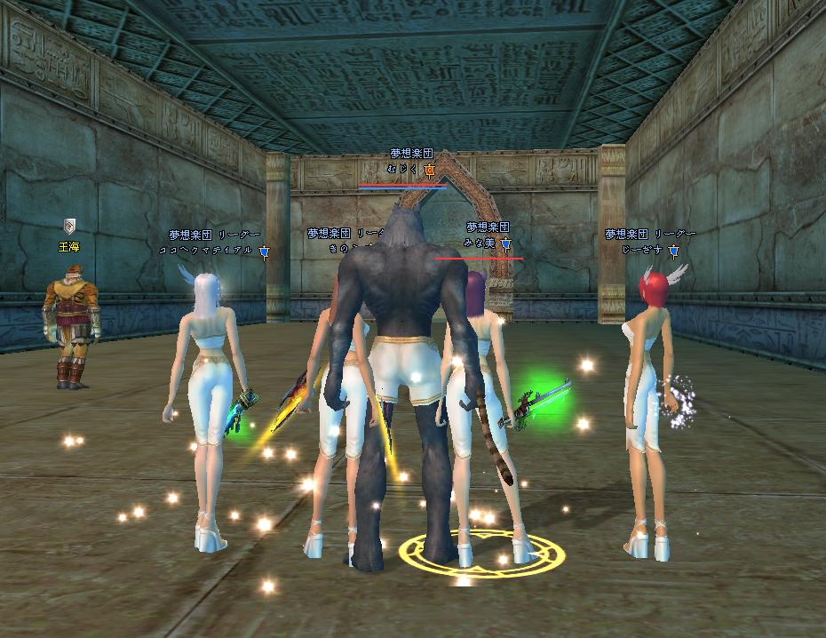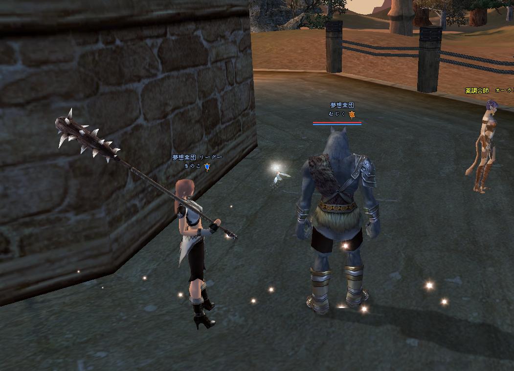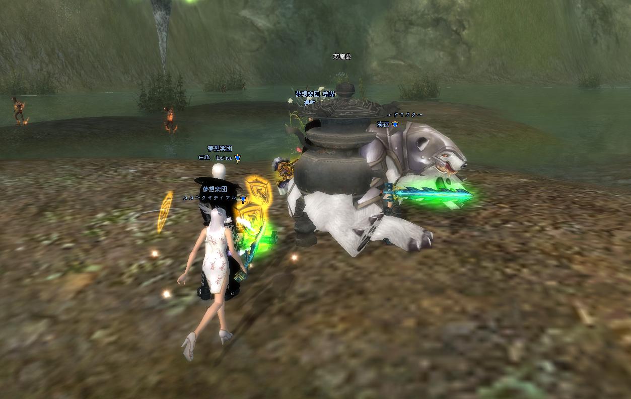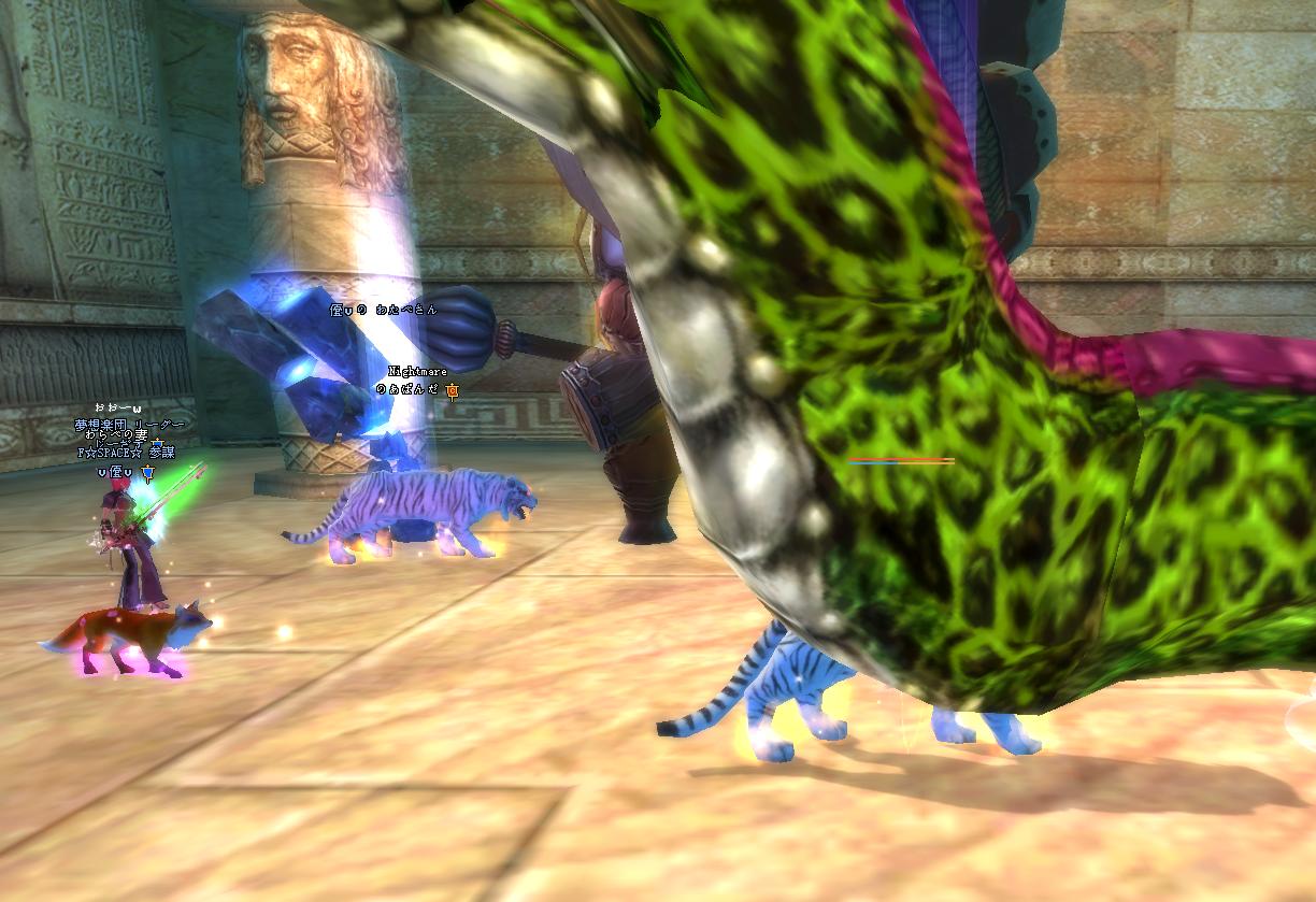 調子よく遊んでいたら・・・ 完美世界 2009年02月05日 いつの間にか悲劇! とかよくありますよね…w黄昏1-1.お狐さま3匹に精霊2人という偏りPT( ´艸`)ゴレ3でフルボッコ(笑このあと太鼓が攻略できず,泣く泣く帰還.3回も試したのにねー・゚・(ノД`)・゚・せめて陣覚えないとダメだなぁー初めてMPKされた図(ぁいぁ,かえるんが首狩りライダー将軍を大量に集めたところに,ペットがあらぬ方向に逃げた将軍に反応してしまい,ペットヒールしようとしたらその通り道にかえるんの陣が・・・w将軍の大量の範囲をまともに浴びてしまい,あっけなくチン♪このあとココさんに起こしに来てもらったけれど,「どうする?^^かえるん,起こす?^^」Σ(`д`ノ)ノエエエエエェ!ココさんのいけずーーーw私がかえるんをMPKMPKと連呼してたからお仕置きされた(*ノд`*)続いて69ダンジョン.鉄消化!ということで,酒あり3周しました.この牛馬も恐ろしかった・・・釣るタイミングを間違えて,ザコもイッパイ来てしまい・・・周りのザコの清掃活動を試みるも,馬の攻撃は強かった・・・精霊は二人いたけれど,一方は69お初だったもので,レストア&ヒールがうまく続かずかえるんがチン・・・そうするとゴレにタゲがいき,そのスキに私は逃げるっ・・・!途中でゴレが死んだため,馬におっかけられながら必死に走り逃げましたwその間にかえるんを起こしてもらい体制を立て直す・・・も,何かがうまくいかず,結局・・・こうなったwいやぁ,まいったまいったw起こしてもらうのも一苦労でした(*ノ∀`*)ごめんねー!その後はむじくんを召還して,再度挑戦.身包みはがされていたせいか,武器防具がへろへろ・・・w2/3くらい店売り装備で,必死にティアとアンガ打ちました.何度も何度も死んでしまったけど,なんとか3周くりあ!いやぁ,まいったまいったw でも楽しかった!死ぬのを厭わないPTで,本当に良かったです(*ノ∀`*)帰ってきて深夜.みなみちゃんがモフモフしたいと言うことで,毛づくろいしてもらった!・・・ひやこがすっごい焦れ焦れしてるようですw [0回]