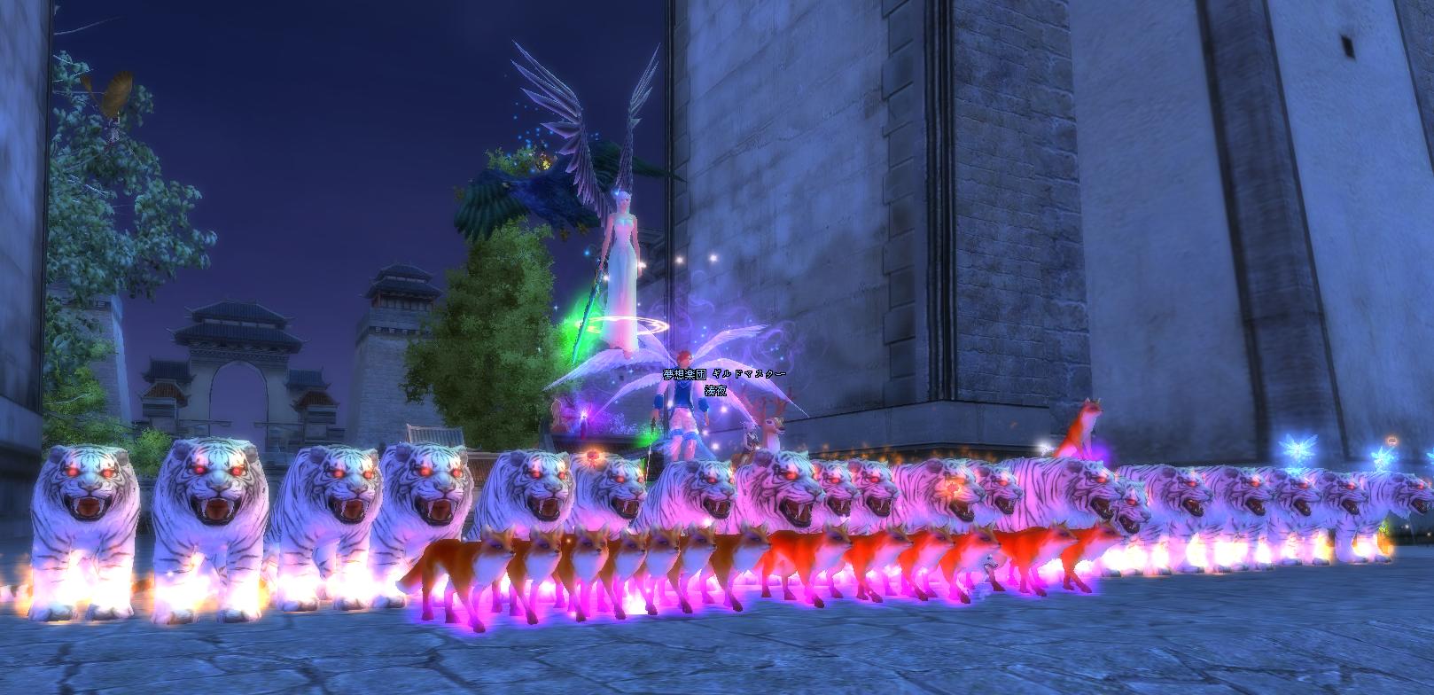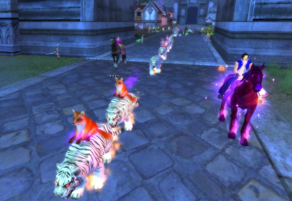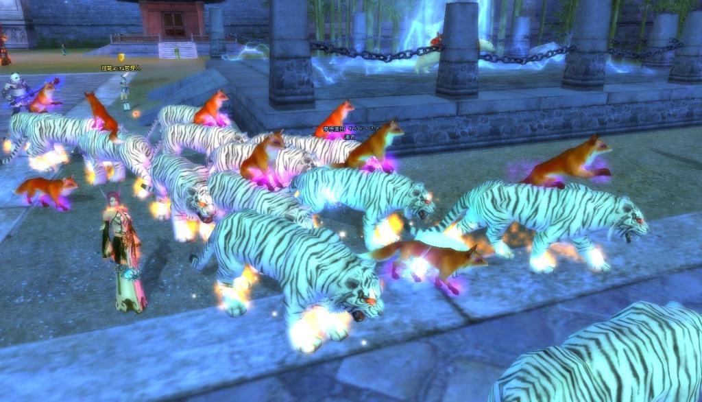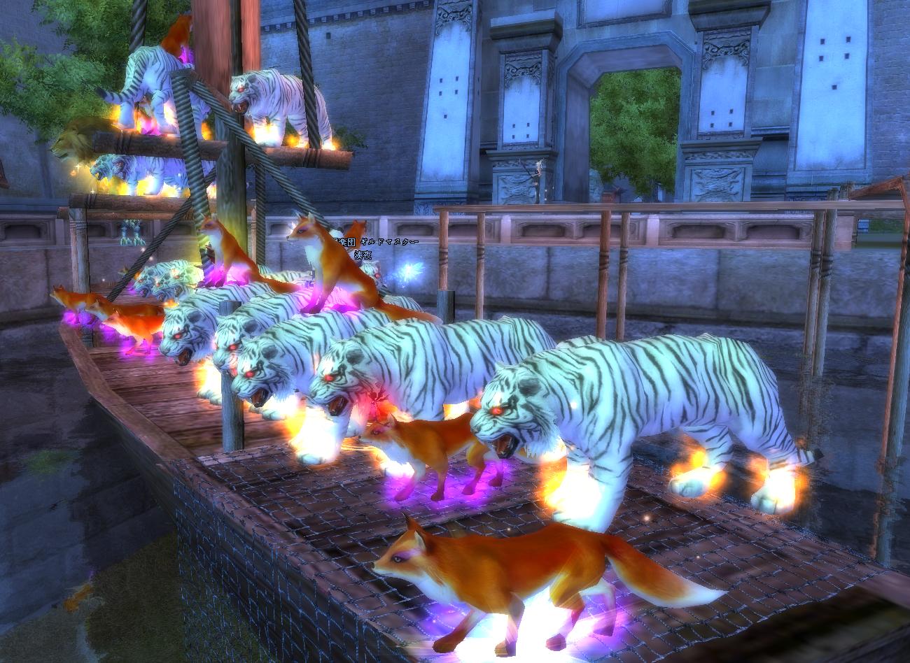 モノノケ大行進 完美世界 2008年11月19日 突発的イベントで,モフさんお稲荷さん集まってーという世界茶に誘われ,行ってみましたwすでにたくさん集まっていてこんな状態wならぶしっぽたち(*´Д`*)散々写真撮影したあとは祖龍西の行進.ソクさんがいたのでのっけてもらうwキレイに一列になって・・・ なんて素敵なんだろう( ´艸`)交通渋滞がおきていますすんませーんモフキツネがとおりまーすどこへ向かうのかまったく不明・・・なんとまぁ,これから船に乗せられて売られていくらしい・・・ルールールー・゚・(ノД`)・゚・ 白い虎は希少種だからって!突発的でも,こういうイベントちょっとずつ増えてる気がする.いいことですの( ´艸`)♪♪とあるダンジョンにて・・・ゴレたんも売られてきたらしい.(ぇ月夜に照らされてらぶらぶしている二人・・・うらやましいぞ(●`w´●)ティアマト特攻という意味不明行動もやっちゃうギルドなんですw当たり前のごとく撃退され,空に散る二人・・・ふぁるさんにゴリ押しして奪い取っ(ゲフンゲフン)フェンリル.最初はウオォォなんだコレーー と思ってたフェンリルですが,時が経てばなにやらカッチョイイじゃないか!と思い始め・・・雷豹をゲットしようと,資金調達に励むと決めました...いつになることやらw そしてゲットできるのやらwフェンリルにはもう乗ることはないかな? ということで記念写真.・・・あ,万獣のそばでも捕まっている白虎が.なるほど,こうやって外で捕まえて,長老は新兵としてこき使ってるのか! [0回]