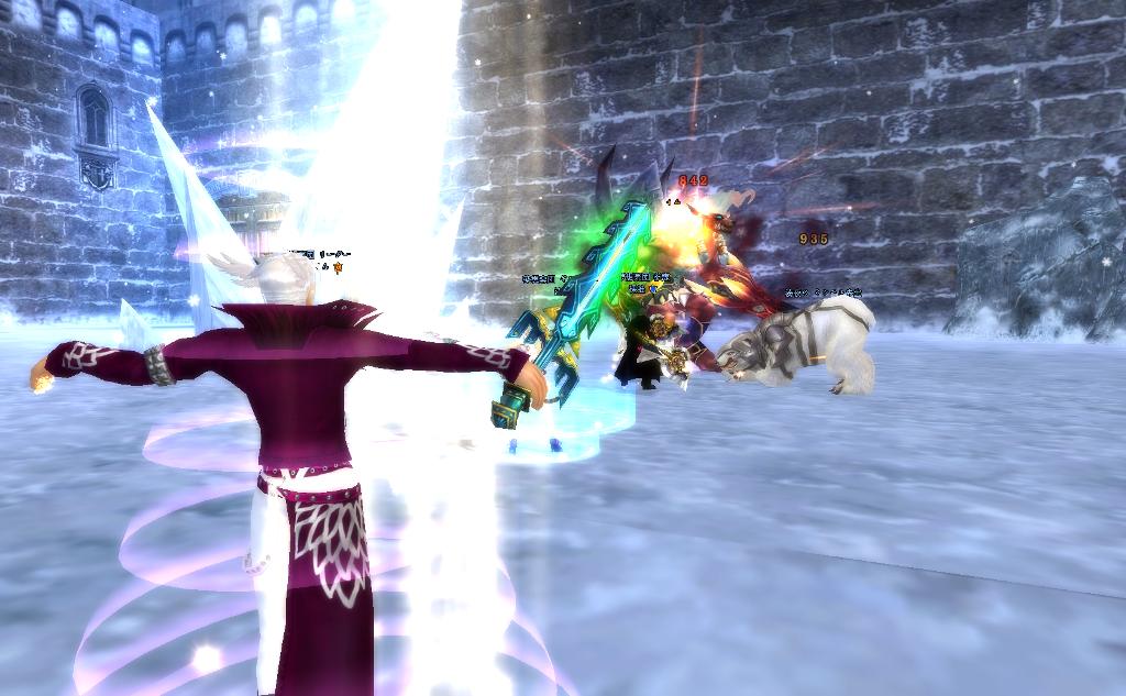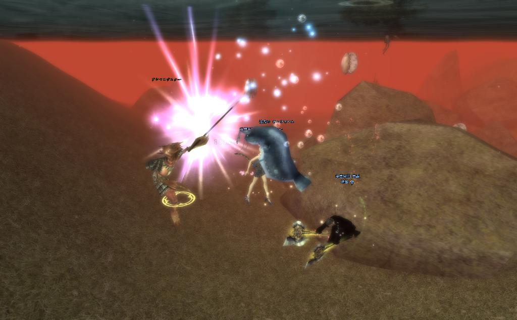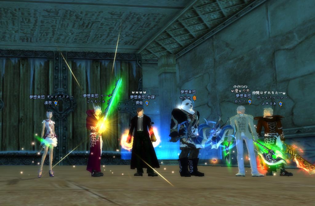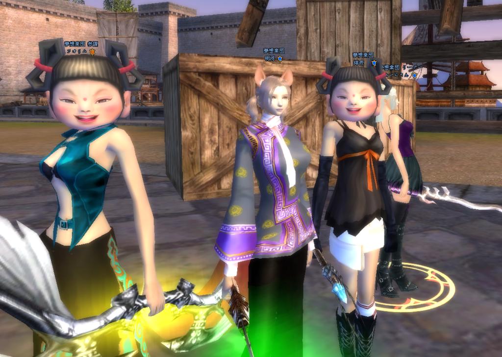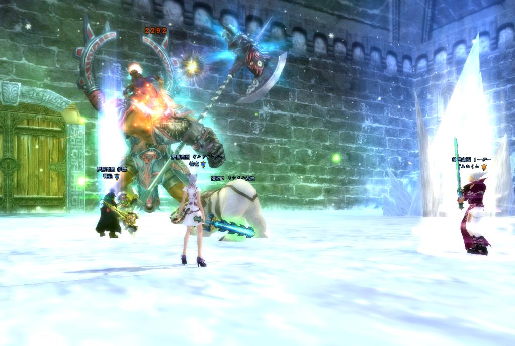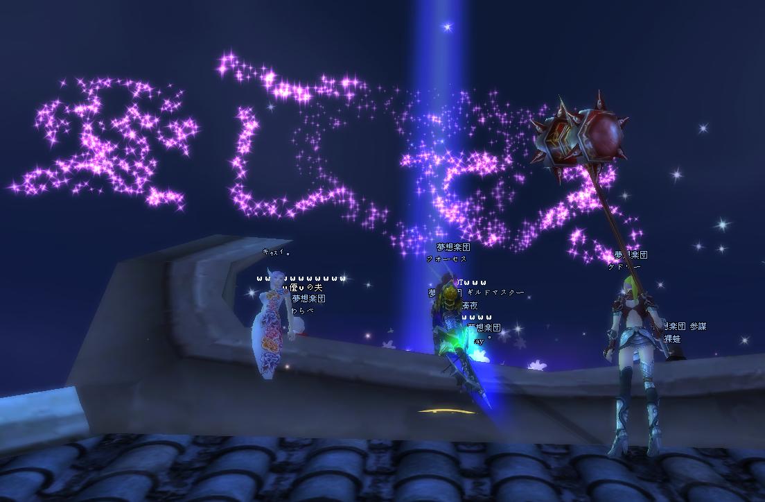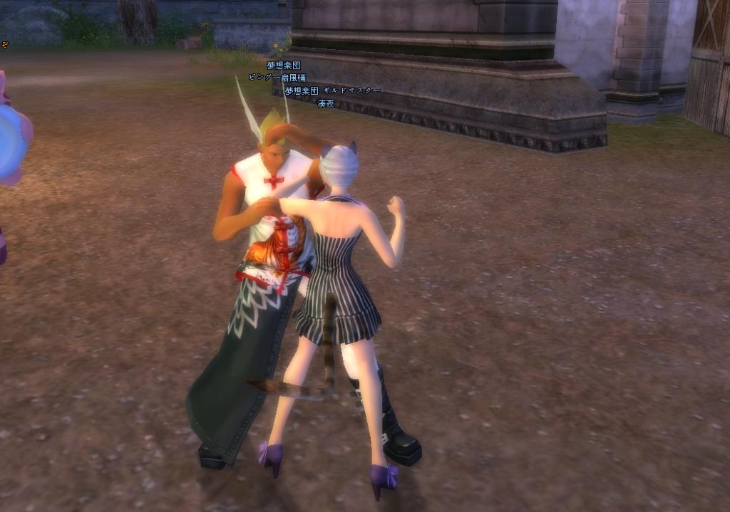 おニューな服とお祝い 完美世界 2008年12月08日 最近の私の楽しみは,もっぱらファッション…レベル上げとかクエとかかなり放置して,ファッションで遊ぶことばかりしています(笑先日実装されたワンピース,あまり着ている人もおらず,試着でもそれほど悪い印象もたなかったので,えいやとばかりに購入してしまいましたwすぐに染色.靴とあわせて&安い染色剤で,リラ色に.扇風機くん:「ヨッ イイジャマイカ!」ジロジロ見るなぁああwハズカシ(*/Д\*)通りがかったアイさんにご挨拶.昭和な香りのする服だね^^ って言われた・・・○rz...出先でまた扇風機くんに遭遇したので,記念写真wカンフー服って,虎柄だったんだね~かえるんはまっくろに染めてたから,まともに柄みたの初めてかも.ようやっと過去クエ進めて,過去世界にいけるようになりました…いざ,出陣.着いたらラピュタに到着で,さっそくMOB狩りしてこいって言われたんだけど.入った水の中が赤い!!!外からは普通に青いのに,中は真っ赤w海は空の色を映しているっていうから,過去の空は赤い設定なのかなぁ.先日,誕生日でした.日付が変わったとたんにふぁるさんが世界茶ながしてくれて・・・(*ノд`*)たくさんの人に,世界茶と囁きいただきました.皆様本当にありがとうございます(ノ´▽`)ノ ♪お祝いといって,これまたたくさんの花火をいただきました...! 皆様ありがとおおおお。゚(*゚´Д`゚*)゚。知らない方まで便乗して花火を打ち上げてくれました.嬉しくてモニタの前で半泣き(*ノд`゚*)本当にありがとうございました!!その後は,うさぎがホチィ!というみな美さんのところへ暇人大集合w見事うさぎゲッツ♪闘ううさぎさんが欲しかったそうで.よかったね( ´艸`)♪♪新種の騎乗が出たようです.なんて力強いwww [0回]