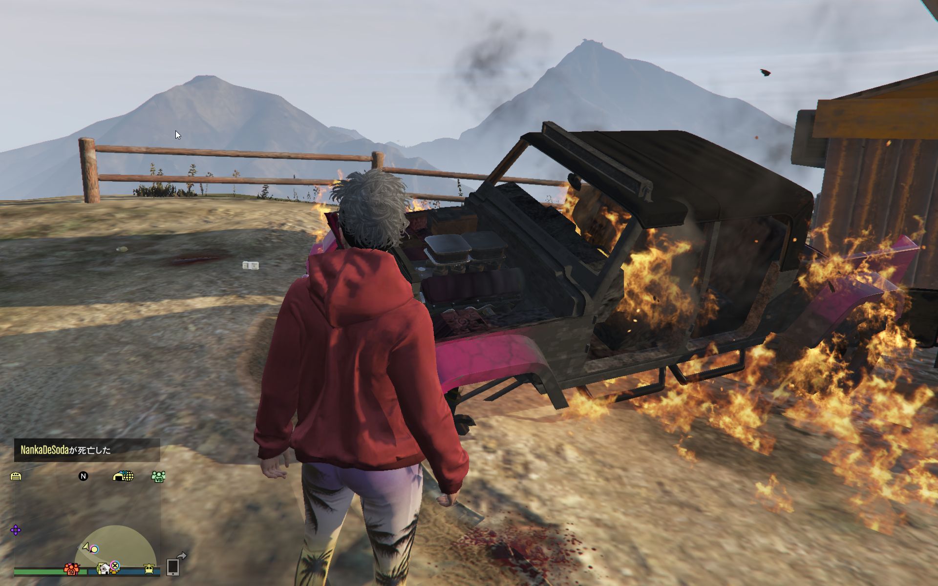 ふっとばされた GTA 2018年02月27日 画面上豆粒化してますが 車の爆風でジャンプ台から吹き飛ばされたチャリンコ乗りの私wwなんか難しい強盗(たぶんパシフィック)をヒーヒー言いながら終わらせて パンツ一丁と共に喜ぶジョブ中のNPC、なぜか入れない扉に向かって必死に身をかがめてる 相手が何もしないとわかってて調子に乗る私現在、スタントジャンプ制覇に向けて頑張ってますw [0回]PR