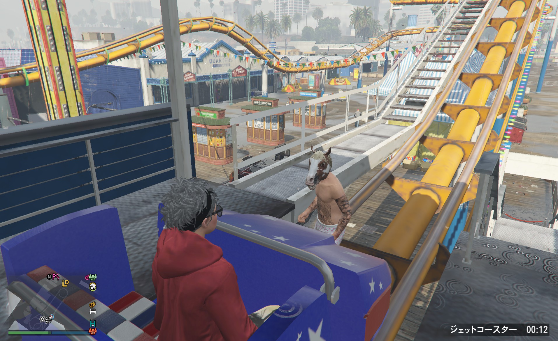 遊園地 GTA 2018年02月23日 ゲームのなかでジェットコースター乗れるとか、ちょっと感動w ちゃんと手も上げるwwヒャッハーー 観覧車も乗った・・・んだけど・・・ 一緒に乗っても背中合わせってつまんなくない?!wそして夕暮れの浜辺をキャッキャウフフの… 殴り合い。殴りあってたらすぐ真っ暗にw 目つぶし作戦とは、やるな、パンツ一丁マン! [0回]
