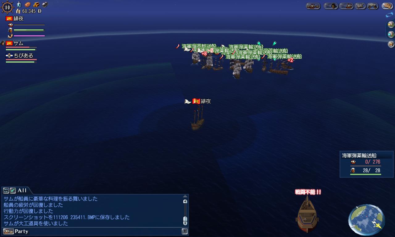 修理!救助!回避! 大航海時代 2006年11月13日 昨日大海戦最終日。あたしとサムンは戦力となることをあきらめ、次回の海戦に向けて、海事修行に明け暮れることとしました。二人で西地中海をうろうろうろうろ…途中から、ちびあるたん、シロッコたん、ゆみさんが合流して、今日も大艦隊で船団をふっとばしました!!うん~…2回ほど沈んだケド…wどうも、戦闘始まるとアセってうまく操縦できなくて…見方の大砲の邪魔してしまうし、ぶつかって進行方向変えてしまうし…orzもっと精進せねばなぁ。座礁させて(ぁ)修理RANK5に達しました!サムンあるたんお手伝いありがとーー!wあとは救助と応急処置を覚えて。外科医術を覚えられるようになったら、補助として使えるようになるかな…(ノ_ _)ノあ、いただいたコメントへのお返事を、ブログの機能を活用しまして、いただいたコメントの下につけさせていただくことにしました!使用テンプレートによっては、いただいたコメントに(返信済)と表示されることがありますが、そうでないテンプレートもあるみたい…大切にコメント読ませていただいておりますので、これからもどうぞよろしくおねがいします(○´ω`○) [0回]