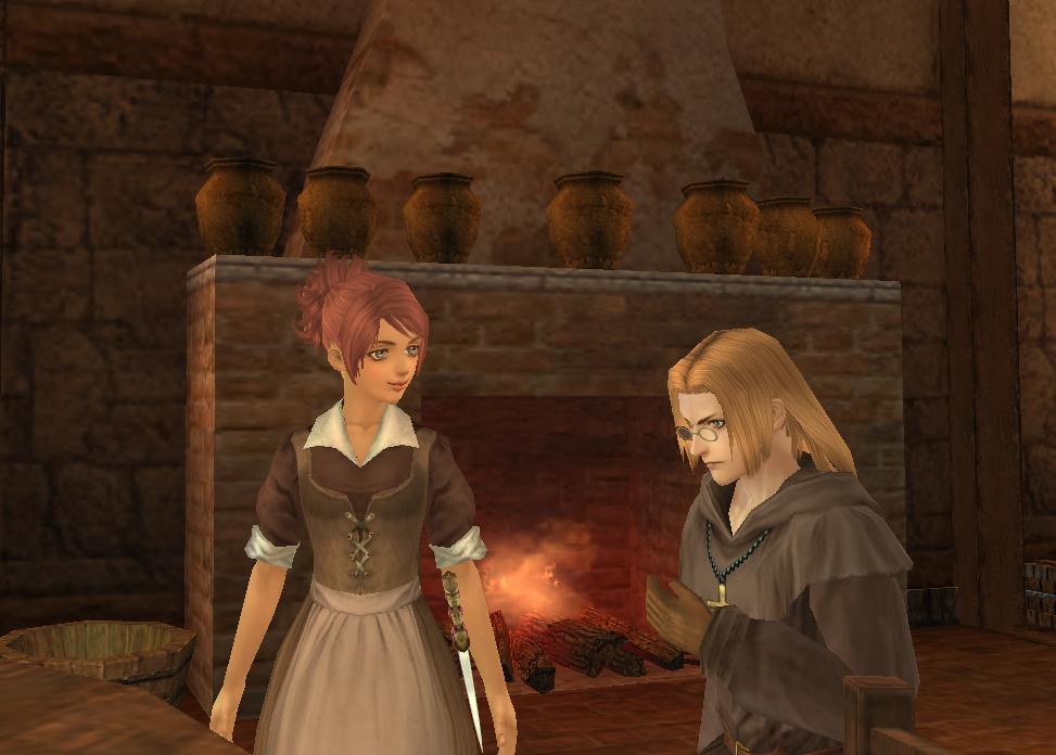 Dress Up!! 大航海時代 2006年09月28日 今日一番のイベント、それは。シルヴァさんにプレゼントもらった!ワーイ♪ゝ(▽`*ゝ)(ノ*´▽)ノワーイ♪エプロンドレスと修道服。早速着てみる。ステキ( ´艸`)今日はさらにベイルートでチャドルとチャドリを110kにて購入。フフフ… 職人さんに染めてもらおうかな♪サム・ポタさんと。モッコモコなベスト着てるみたい…w…うさんくさい修道士の図。(ぁ 以下、おへんじ [0回]