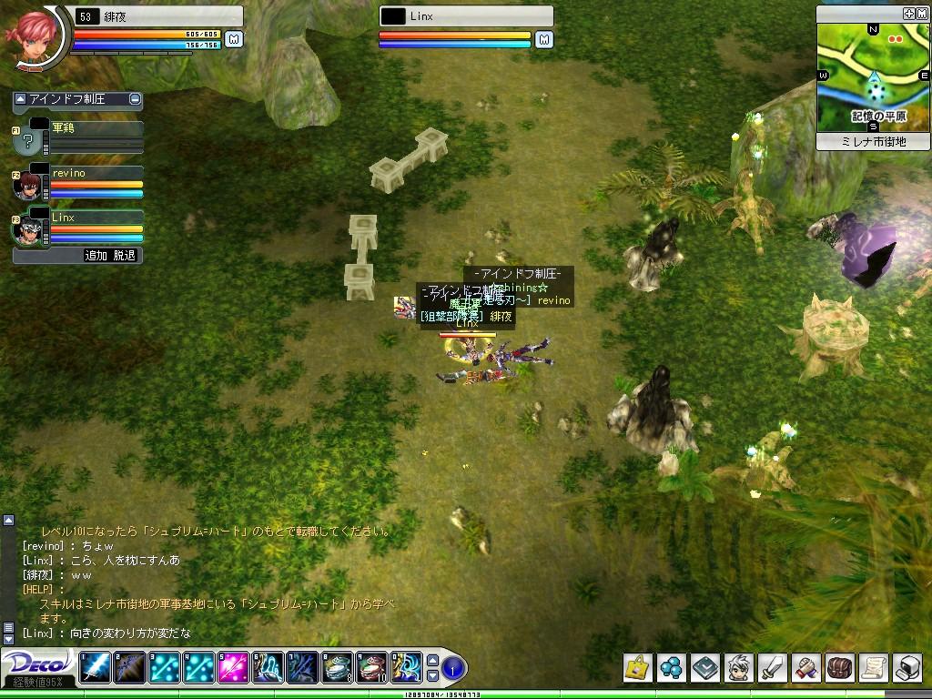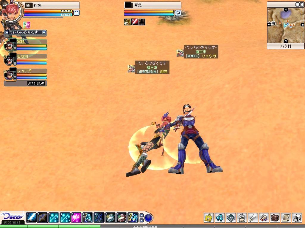 あの地平線~ Deco Online 2006年06月08日 今日はアインドフの木材吹き溜まりでリョウガさんを待ち伏せしました。で、即拉致w久しぶり?なPTでの伐採。白木がスキル3発でいけました。でも被ダメ痛い…orzその後、軍鶏さんからメッセでよばれ、三人で沼へ。今日はドロップが悪かった…リョウガさんが-9だから?w今日はなぜか重かった。。軍鶏さんが何回ワープしたことか。途中で休憩、ハクにて露店放置。収穫なし。侍さんがインされたのでこれまた拉致。海へGO!アリスさん、Linxさんも合流されてメガラス♪メガラス♪カーリーブレイスさんも合流。リーグPTにきりかえ。さらには逝っちゃったLinxさんが風姉さんも拉致ってきて、大きなPT集団になりました。弓職は私のみ。ちょとキツかった^^;でも大勢ヒールの練習になりました。みなさんの位置把握と、ヒール順番。侍さん、私、風姉さんがUPしました。やたー♪♪そう、私はついにメロン脱出!!短期間で上がった気がします。これもPT皆様のおかげです。途中から私壊れてました… 自棄酒気分でカルーア呷ったら気分よくなってしまって^^;さりげなくいろんな人に迷惑かけてた気がします。ごめんね(。≧Д≦。)本日PTのみなさん、ありがとうございましたー♪♪うだうだしゃべっていた結果、リョウガさんが魔王軍に移籍されました。獲得!それから、ずっと考えていた櫻愁のことですが(考えていたのですよ)、ごきんじょ冒険隊を離隊しました。一度に二人もぬけてしまいミルフィ隊長にはご迷惑をおかけしたと思います…でも、セカンドな上に、現在ほとんど緋夜でインしている状況で、別ギルド掛け持ちはやっぱりよくないなと。弓に嫌気が差したとき、爽快感を味わいたいとき、櫻愁でインしようかなと思います。以下 素敵にたくさんあるコメントへのおへんじ~(ノ´▽`)ノ つづきはこちら [0回]