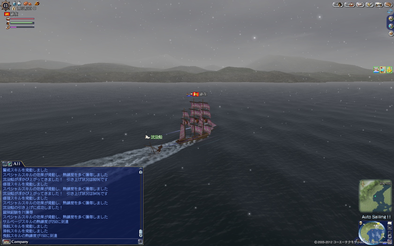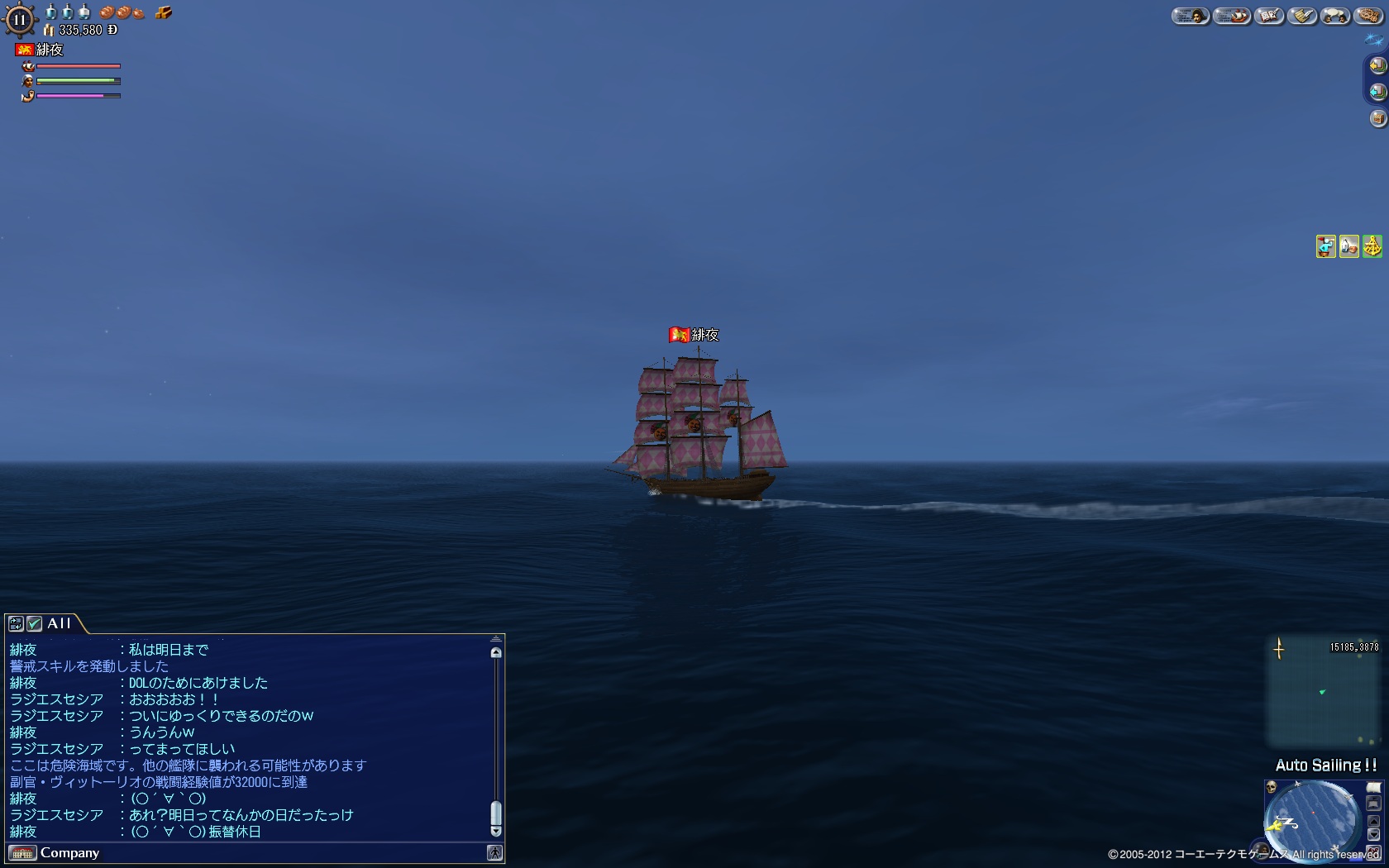 メリークリスマス! 大航海時代 2012年12月27日 商会街は(主にサムンのおかげで)順調です。代表は釣りしながら応援ヽ(=´▽`=)ノ年末の大詰め仕事も終わり、久しぶりにゆっくりインしたのはもう23日でした。え?クリスマスイヴ?雪が舞う北海で沈没船釣り上げ~♪南米方面にためていた地図を消化すべく、チリ海盆を超えてぐるりと旅をしました。いやー実に充実。地理学を上げるため、修行中でし。夜になったらサムンも来ました。各国拠点に綺麗なクリスマスツリー! ロンドンとリスボンでパチリ☆ラジ江の頭もキラリ☆昨日インしたときに、スクールチャットで海事の上級卒業試験募集をしている方が。「すみません、非戦なんで」「んーいまアムスだからごめん・・・」というチャットばかりで寂しかったので、「行きます!」と名乗りを上げてしまいました。サムンあるたん、お付き合いヽ(。・ω・)ノ゛☆ありが㌧☆ ヾ(・ω・。)ノ 無事に卒業できましたヽ(=´▽`=)ノおすそわけで海事名声200ももらっちゃった!ユキノはこれで海事名声が倍になった@w@さーて、この年末年始はリアル北米に上陸します!ニューヨーク行ってくるよ~♪♪帰ってきたらまた存分にあそぼーワーイヽ(゚∀゚)メ(゚∀゚)メ(゚∀゚)ノワーイ [0回]