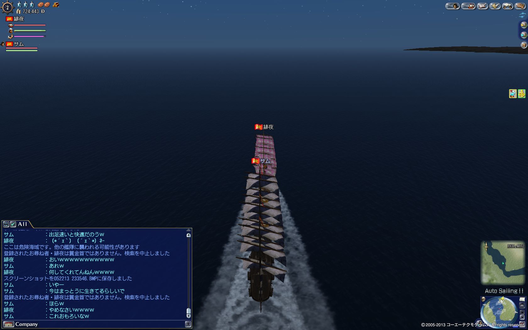 のんびり航海 大航海時代 2013年06月01日 こんにちは。数日、数日と間を置きながら細くながーーく遊んでいる今日このごろです。5月頭頃の話だけど、今更アップ。GWにアンコールワットに行った話を聞いて、羨ましくなって私も行ったったヽ(`Д´)ノ寝そべり地蔵もちゃんといるこういうの見てて、あー、やっぱ大航海っていいよなーと。お気軽に行った気になれるのが自分にとって大航海の醍醐味です。そしてサムンは・・・昔間違って海戦しかけたことを今だに根に持っている・・・!!賞金首じゃねぇー!!ゴ━━━━(# ゚Д゚)━━━━ルァ!!いやぁ、まぁベンリなものが実装されたものですよねー。危険海域に乗り込まずして冒険はできないので、船倉空っぽ、所持金50k以下でうろうろしてます。中型軽クリの単騎なんて、どーみてもお金なんか持ってないのに襲ってくるんだよなぁ、PC海賊さん。仕掛けられたらもう諦めて、帆をたたんで一歩も動かずマグロ状態で負けるのを待ちます。取られて悔しいもの何も持ってないのでむしろ上納品あげるほうが高い…一度「ごみwww」って言われた。そうですw私はゴミです。お掃除ご苦労様!!というわけで、のんびりの冒険はまだまだ続きます。たぶん。 [0回]