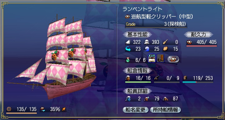 巡航型軽クリッパー・改 大航海時代 2013年06月06日 うぇっへっへーもうたぶん3年乗っている巡航軽クリですが、リビルドや初期化やなんかが実装され、初期化してあれこれしたほうが速くなると言われまして。ヽ(`Д´)ノじゃあナントカしたい!とバタバタした結果、甘々なサムンは材料を全部用意してくれて「造るのはお前がやれ!スキルは貸すから!」とのお言葉。ま~なんてこの人、優しいでしょう。お礼にエメラルドあげる。で、その教えに従いまして出来上がりましたのがこちら。ピーーーンク!!派手!!でもかわいい!!中身はこちら。驚きの対波・旋回!もーくるんくるん廻ります。直前でつおい敵船NPCがあっても慌てず騒がず迂回できます。強化性能はこんな感じ。サムン曰く、大成功が3回出たそうです。シロウトにはよくワカラン。おかげで冒険はひじょーにやりやすくなりました。リスボン-カリブ往復だってチョチョイのチョイ☆サムンほんとに、いつもいつもありがとうございます(>人<)商会開拓街のほうもサムンががだいぶ手直ししてくれたらしく、綺麗に整備されていました。書庫も6件揃ってるし、庁舎できたから転職自在♪あとはサロンと大学やね~楽しみ。サムンは「カネは俺がなんとかする」と言ってくれますが、申し訳程度にお手伝いさせていただきます。 [0回]PR