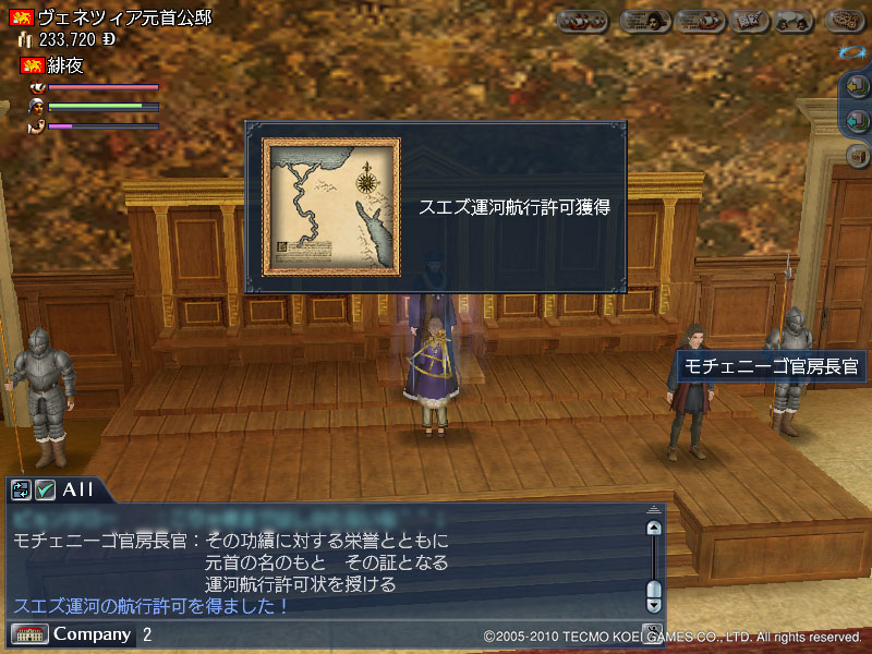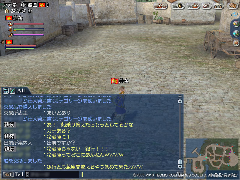 日本上陸 大航海時代 2010年09月07日 東アジア勅命を無事クリアしたので,早速東南アジア~東アジアの街だしに出かけました.( ゚Д゚)ウマーしかし…ナメていました…ウワァァ-----。゚(゚´Д`゚)゚。-----ン!!!!こちとら冒険職,大砲も装甲板も積んでない.修理の木材も嵐のためだけ,船員も運転に必要なだけ…;;あっというまに食われました.大スパンカと鉄鉱石8こ(笑)盗まれた○rz危険海域をのこのこ泳いでいた私が悪ぅございました(´-ω-`)-*-*-*-*-*-*-*-*-若干頭が寝ていながらの航海.長期航海が続くと思考回路もどこかネジがはずれるようで…冷蔵庫ってなんだお(-公-、)シクシク-*-*-*-*-*-*-*-*-ちょっと気分を変えて,サブキャラ育成.交易人に育てて,生産トカ色々やらせたいな~なんて思ってます.便利な学校ができたもんですねぇ.イケメンが出てきたので思わず(*ノωノ)-*-*-*-*-*-*-*-*-一度日本に着きましたが,諸事情により再びジャカルタへ.師匠がアヒルから羽毛を作ってくれるというので,私はその間に付近の簡単なクエを受ける.←どうみても,師匠のほうが太ってますね(・∀・) →宗教学ブーストのために着たら,酒場娘とおそろいでした(*ノωノ)しかしこの服,あと耐久7…新しいの,作らないとなぁ.ジャカルタは変な人がいっぱいでした…←ハダカにツタンカーメンて!このあと斡旋書連打してたんで,ブーストしてたんだってことは分かりましたけども!w →イケメンが着ぐるみ!!カッケェ(´☯д☯`)ホスィ…と,なんだかんだ遊びながら,長崎到着.何か説明しようとしてくれる師匠ほっといて一人うろうろヘ(゚∀゚ヘ)アヒャ酒場も日本仕様!さっそくポン酒とおにぎりかっ食らった(*´∀`*)♪作ってもらった羽毛を役人に渡して,許可申請完了.しっかし,取引レートがめっちゃ悪くて,羽毛170こくらいに種子島銃6丁しかもらえませんでした.がっくし.さてさて,お次は…もうすぐ副官二人目が雇用できそう,ということもあり,美代ちゃんを連れてEUに帰りたい.というわけで,このへんで冒険ウロウロしようかなぁと目論見中.でも爵位授与の知らせが入ったので,それも受け取りに行きたい…なやましー!w [0回]