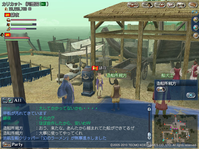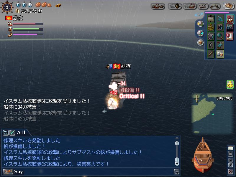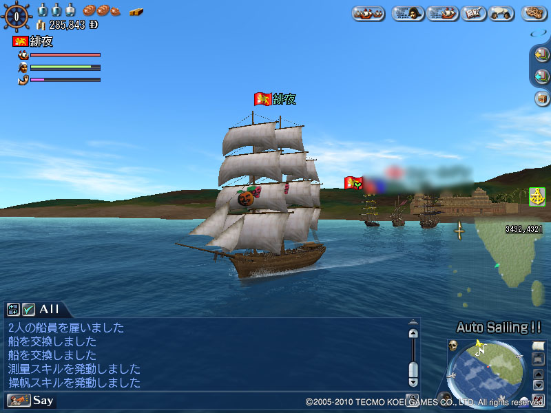 巡航型軽クリッパー 大航海時代 2010年09月01日 相変わらずヘマをしながらぷらぷらしております.無事スエズ運河開通!喜び勇んで運河を渡る…SS撮り忘れた.一人で20分さびしかったよ…wずっと小型スループに乗っていたので,新しい船に乗りたいの!!とおねだり…(*ノωノ)なんか,スゴイ名前の船になった( Д ) ゚ ゚5Mで造ってくれました.ありがたや…サム「強化はやれや( ゚Д゚)ゴルァ!!」というお言葉により,海にプカプカ×6日を4回繰り返す.周りも造船しているらしい方々…みんな船でかすぎ!!そして,無事進水.わほーーい.+゚*ヽ(㊤´∀`*㊤)ノ。:゚+あったらしい船~♪♪喜び勇んで乗り回す…ウワァァ-----。゚(゚´Д`゚)゚。-----ン!!!!ここはキケン海域であることを忘れておりました.上納品も品切れでした.チーン..._ノ乙(、ン、)_早速耐久減らしてしまいました( ノД`)シクシク…とかなんとかやりつつ,街めぐり.東南アジアもなかなかに綺麗ですね.海賊いぱーいでこわいけど,もっとうろうろしてみたいです. [0回]